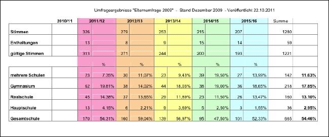 Die (fast) vollständigen Zahlen der Elternumfrage aus 2009 !